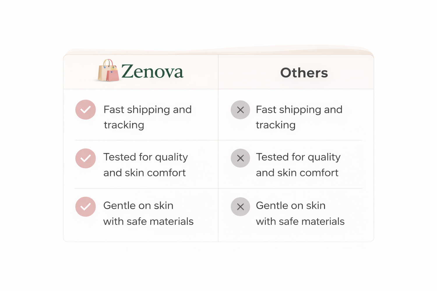 Zenova brings beauty tools that are safe, gentle, and made to last. We keep prices friendly, ship fast, and offer support when you need it.